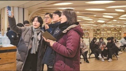 迎来大批韩国游客打卡美食店的第一百货商厦,在去年年末兴起的韩国游客“周五下班飞中国”中占据“顶流”。第一百货商业中心营运管理部副经理乔慧君分享说,去年11月以来南京路步行街上的韩国和东南亚游客人数激增。第一百货内的很久以前羊肉串、海底捞和牛NEW寿喜烧深受外国游客喜爱,22时后这几家餐饮店的外国顾客占比高达70%至80%。为此,商铺开发了韩语的指引、菜单,并配备了外语能力较强的服务人员等。从免税金额上看,第一百货离境退税物品金额较去年同期相比增长约2至3倍。目前,第一百货正在设计四国语言的导购手册,尽力为海内外游客提供更便捷的服务。